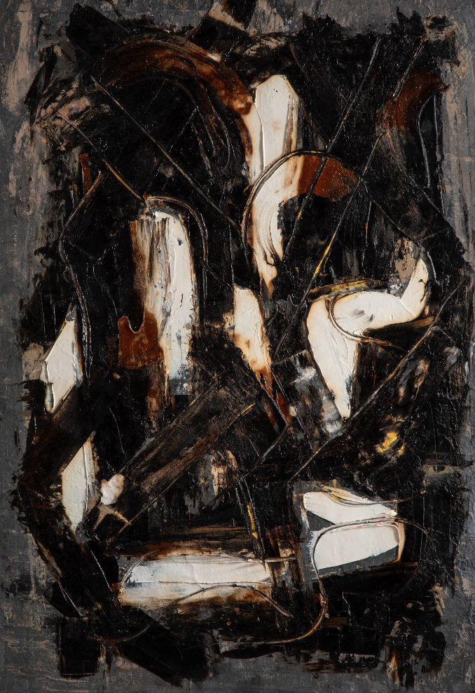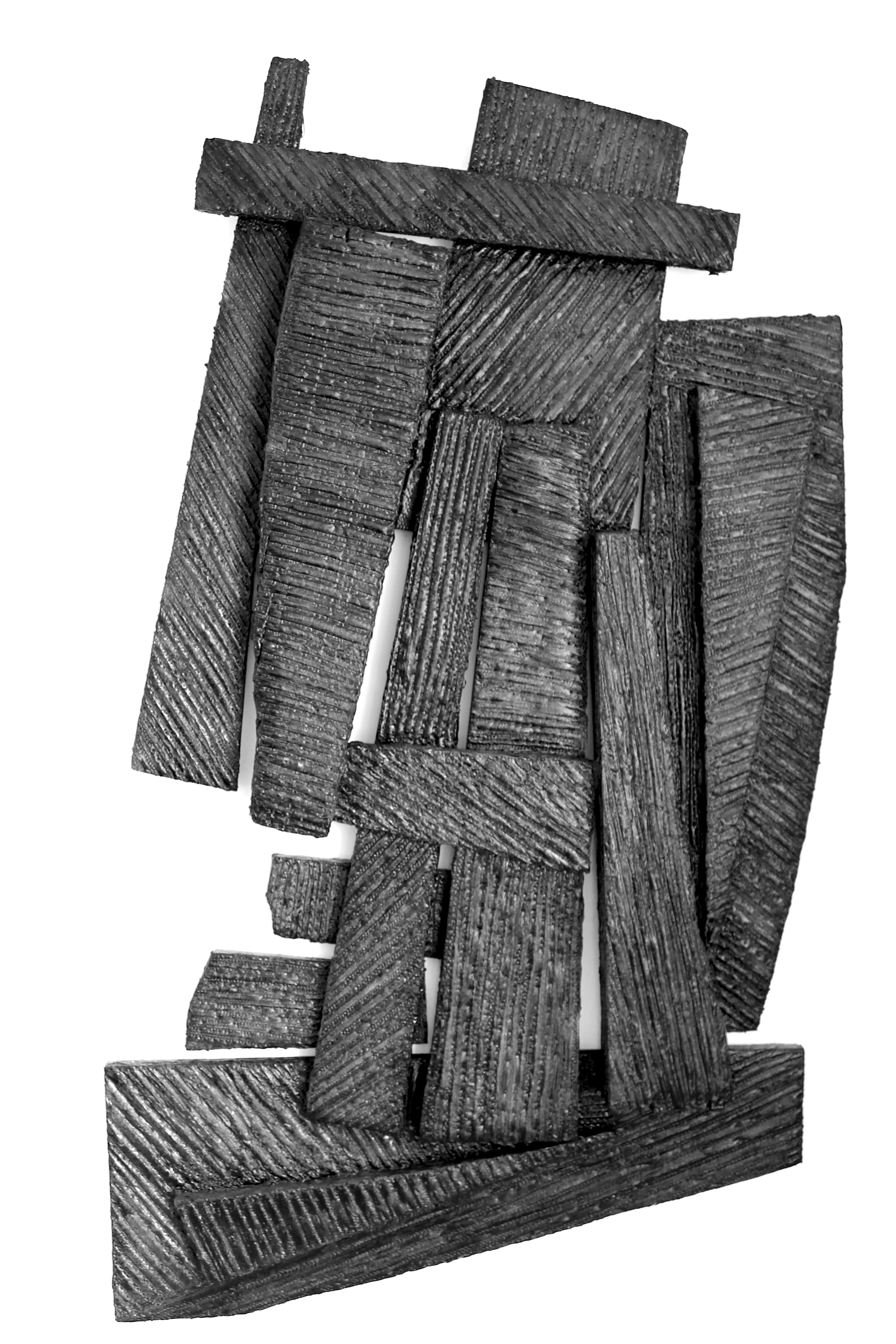 charged, roughly textured sculptures and three-dimensional paintings that possess